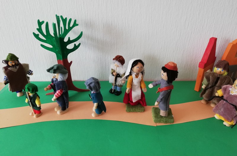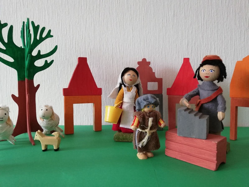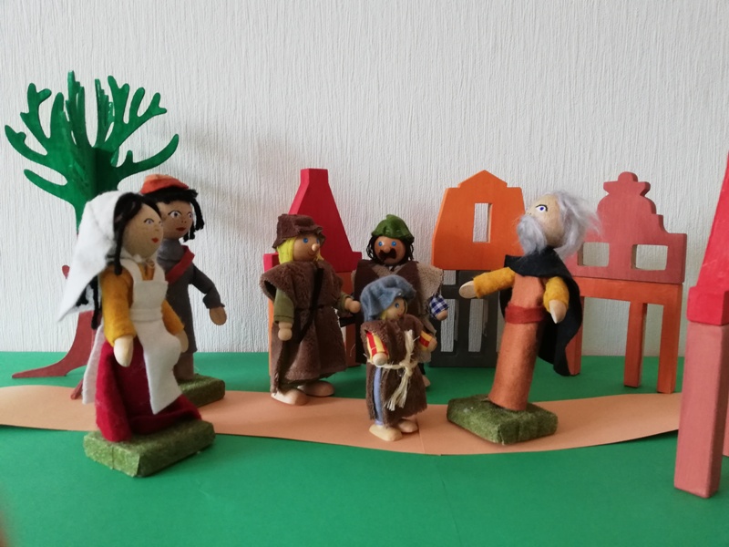 In Jerusalem gehen sie in den Tempel und beten zu Gott. Nach dem Fest machen sich alle wieder auf den Heimweg. Nur Jesus ist nicht dabei, er bleibt noch in Jerusalem, im Tempel.