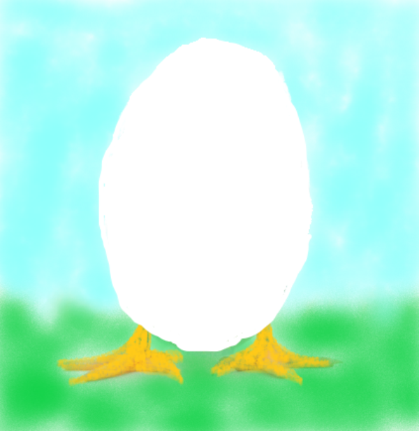 Aus dem Ei schauten nur zwei winzig kleine Beine heraus. Das Ei auf Beinen erhob sich und taumelte durch den Hühnerstall. Alle hielten sich vor Lachen die Bäuche. Nur das kleine Küken im Ei verstand nicht, was daran so lustig war. Es konnte doch nichts sehen und wäre so gerne frei.