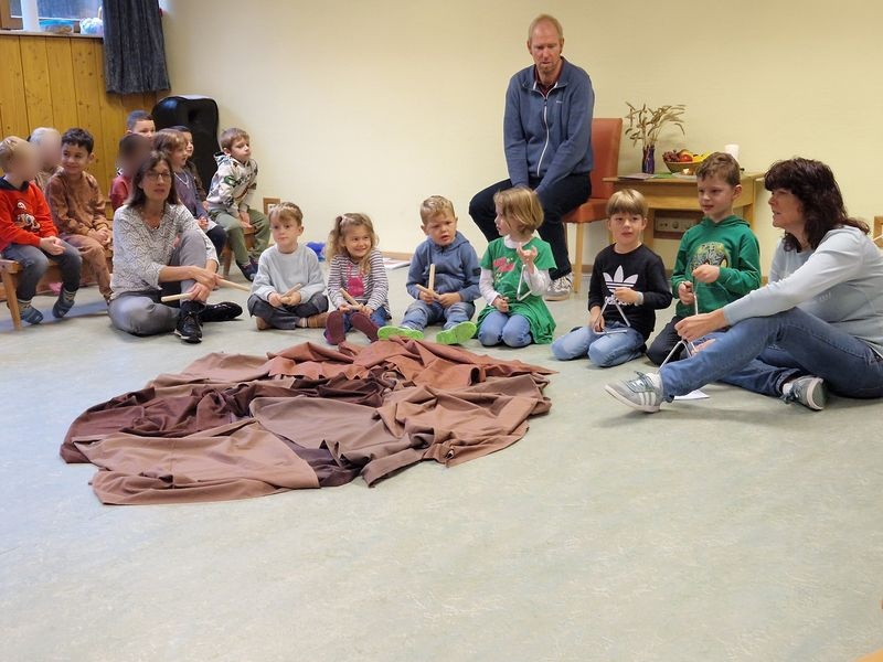 Hier haben einige Kinder des Käferzimmers ein Lied musikalisch begleitet.