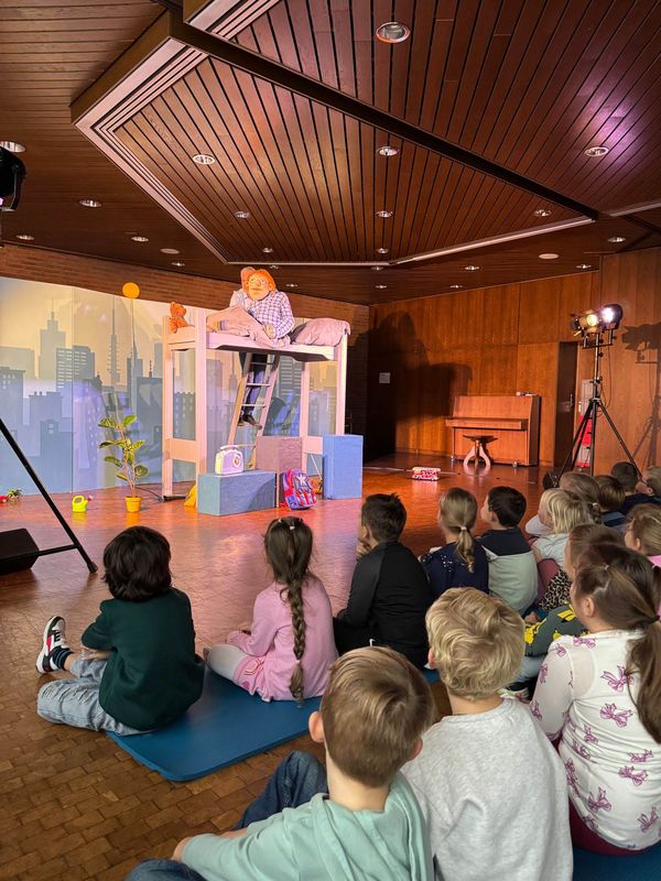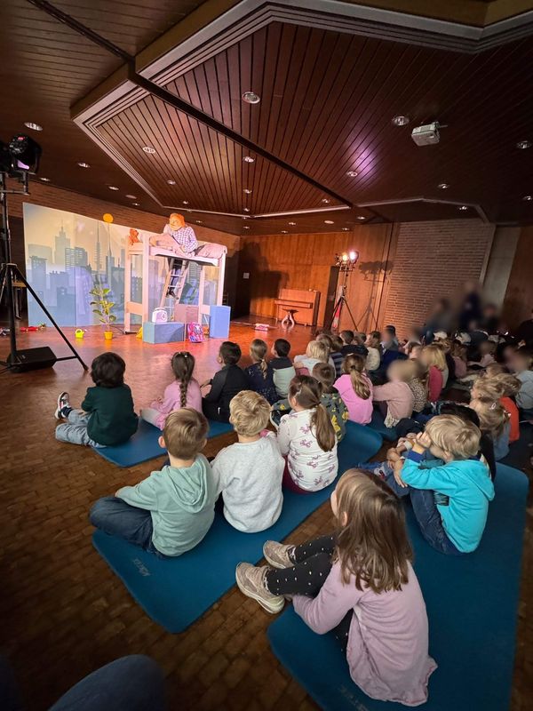 Dort durften sie sich das Stück "Super-Willi setzt sich ein" vom Figurentheater "Die Roten Finger" anschauen.