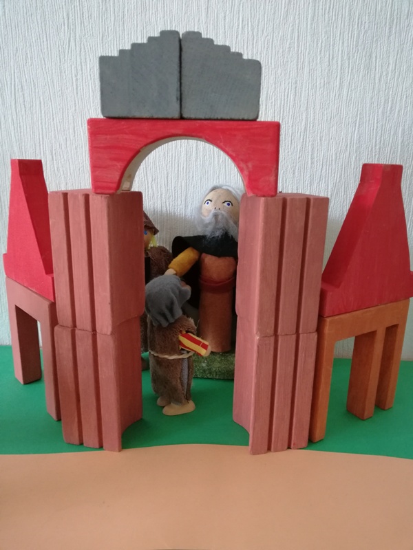 In Jerusalem gehen sie in den Tempel und beten zu Gott. Nach dem Fest machen sich alle wieder auf den Heimweg. Nur Jesus ist nicht dabei, er bleibt noch in Jerusalem, im Tempel.